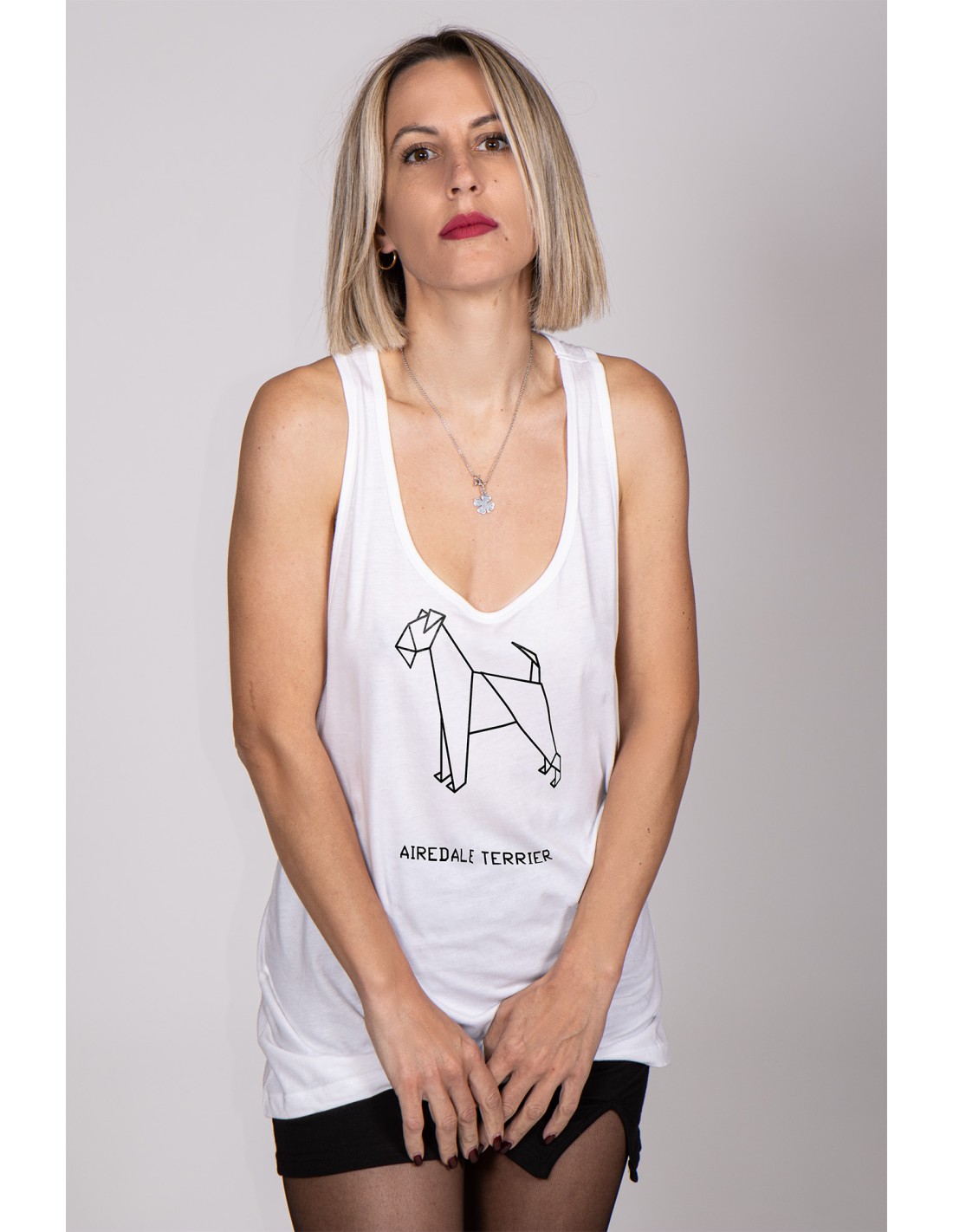 Discover the uniqueness of our Women Tank top , crafted for gym enthusiasts, with its generous cut and distinctive Origami Airedale Terrier graphic. The side cut elegantly reveals the chest, blending comfort and style in the gym.