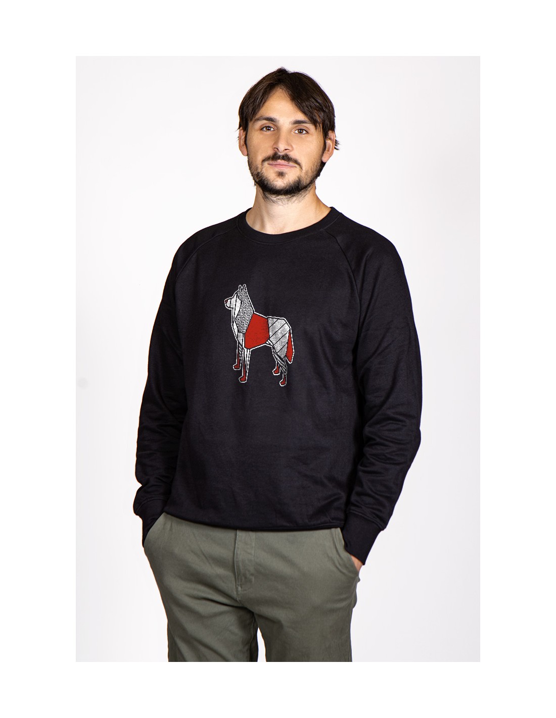 Pop Origami Siberian Husky Men's Round Neck Sweatshirt
