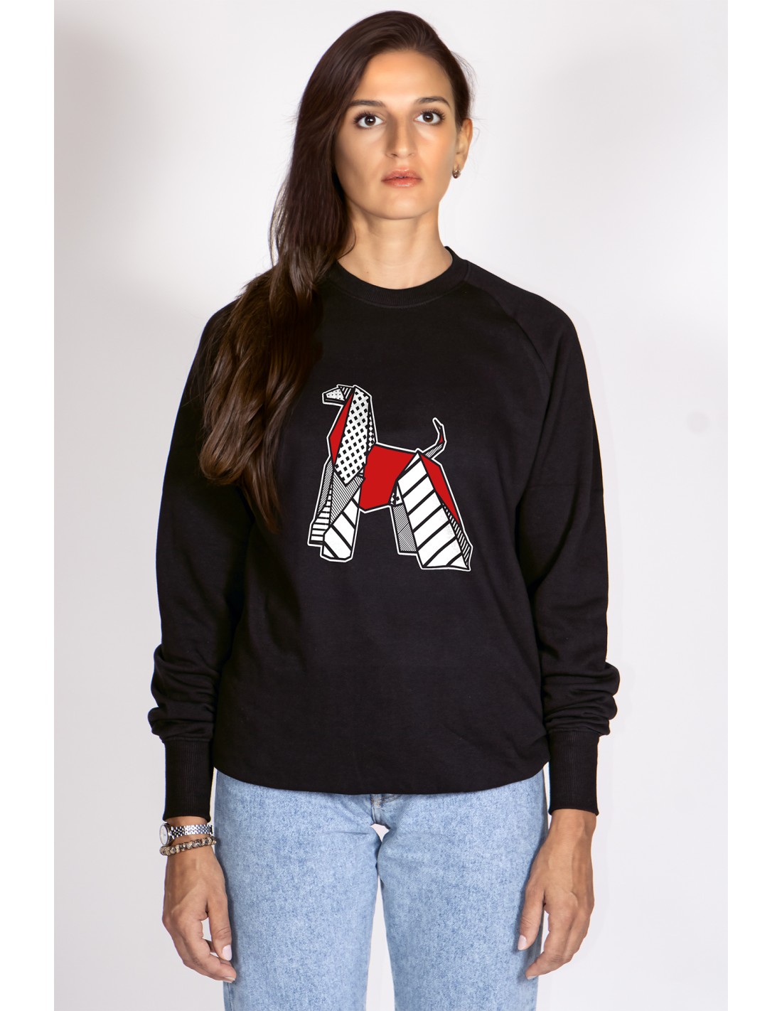 Pop Origami Afghan Hound Woman Round Neck Sweatshirt