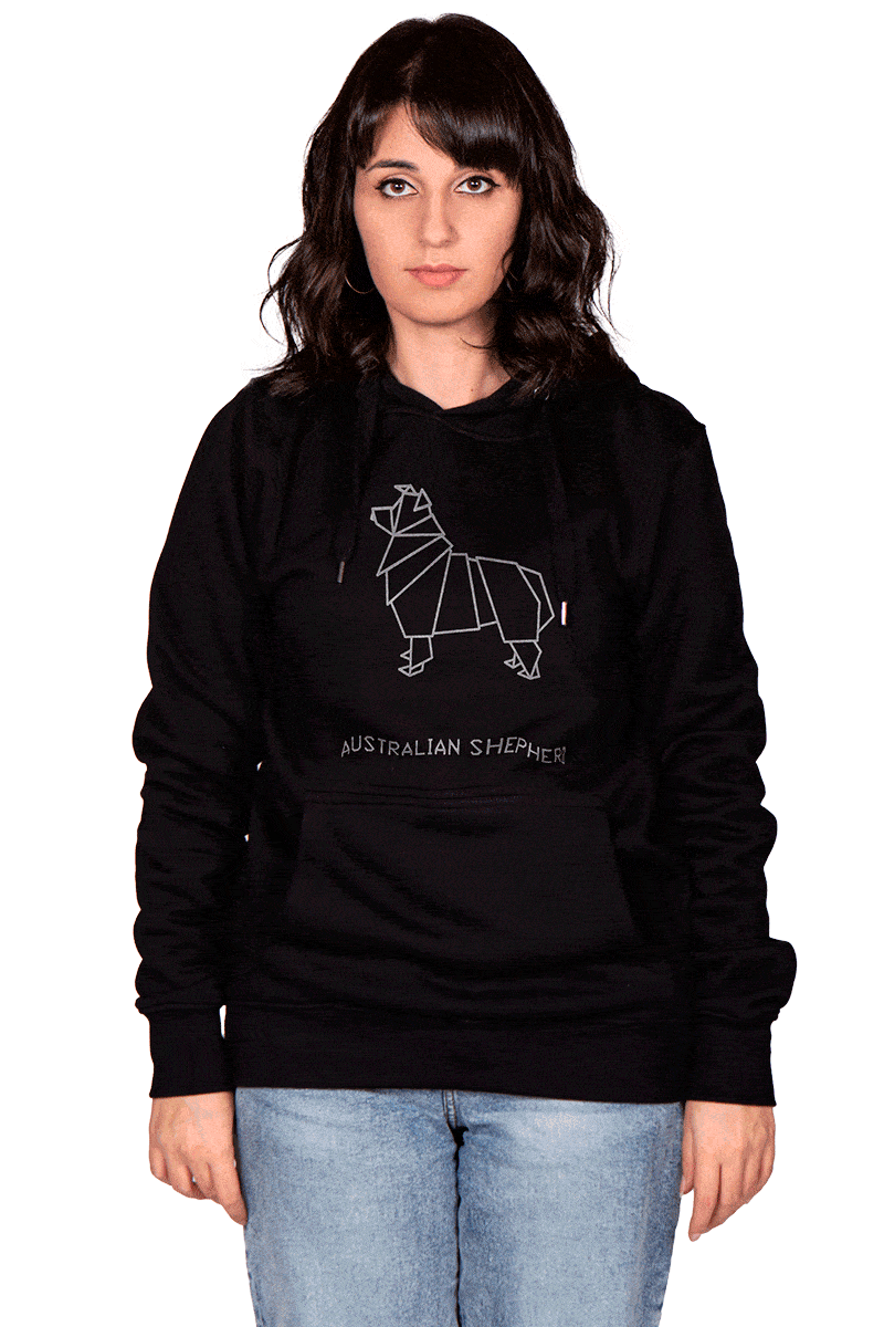 Sintonizzati con il tuo spirito creativo, indossa la Felpa Con Cappuccio Donna Origami Australian Shepherd e fai una dichiarazione di stile e sostenibilità. 🐾✨