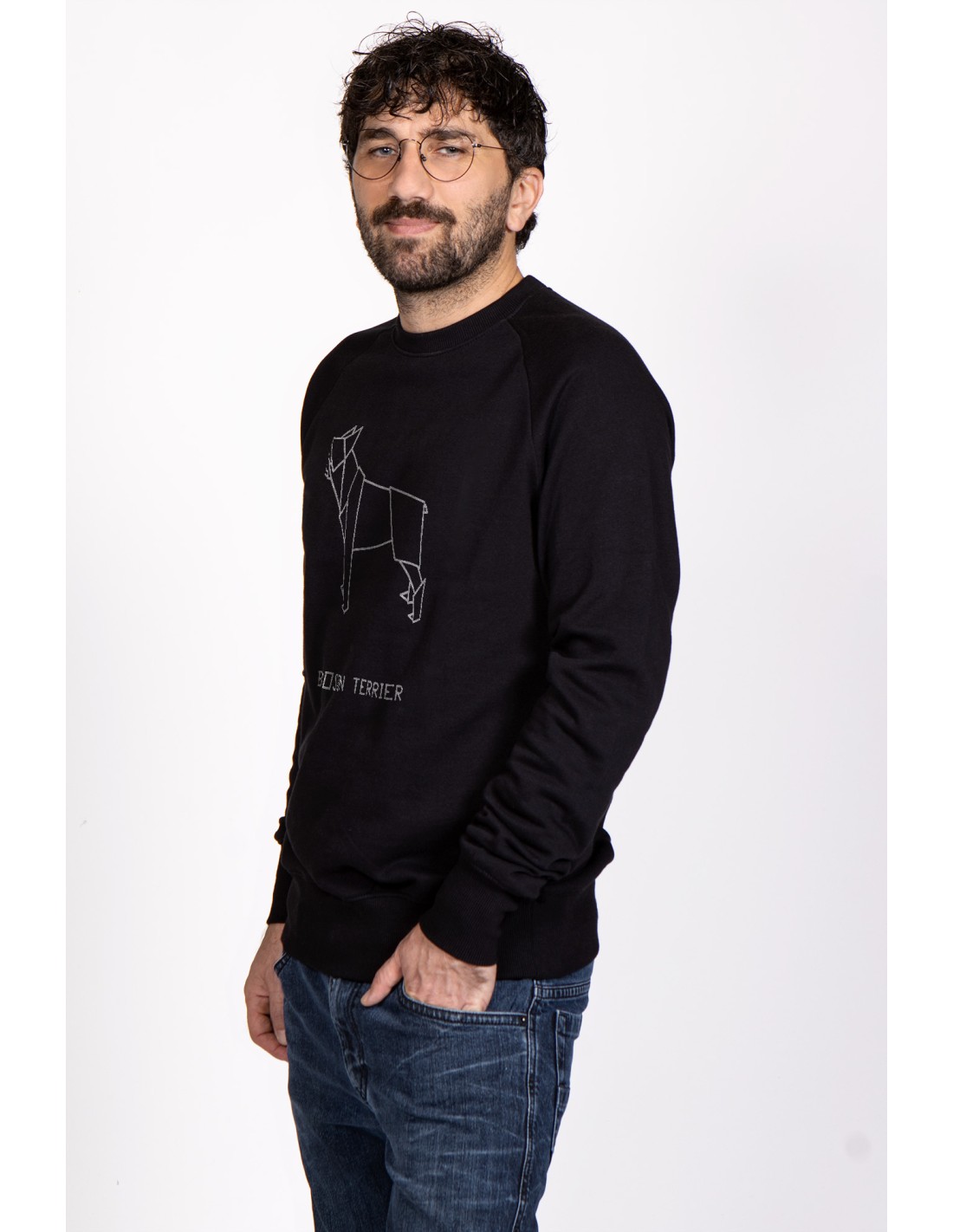Felpa Girocollo Uomo Origami Boston Terrier