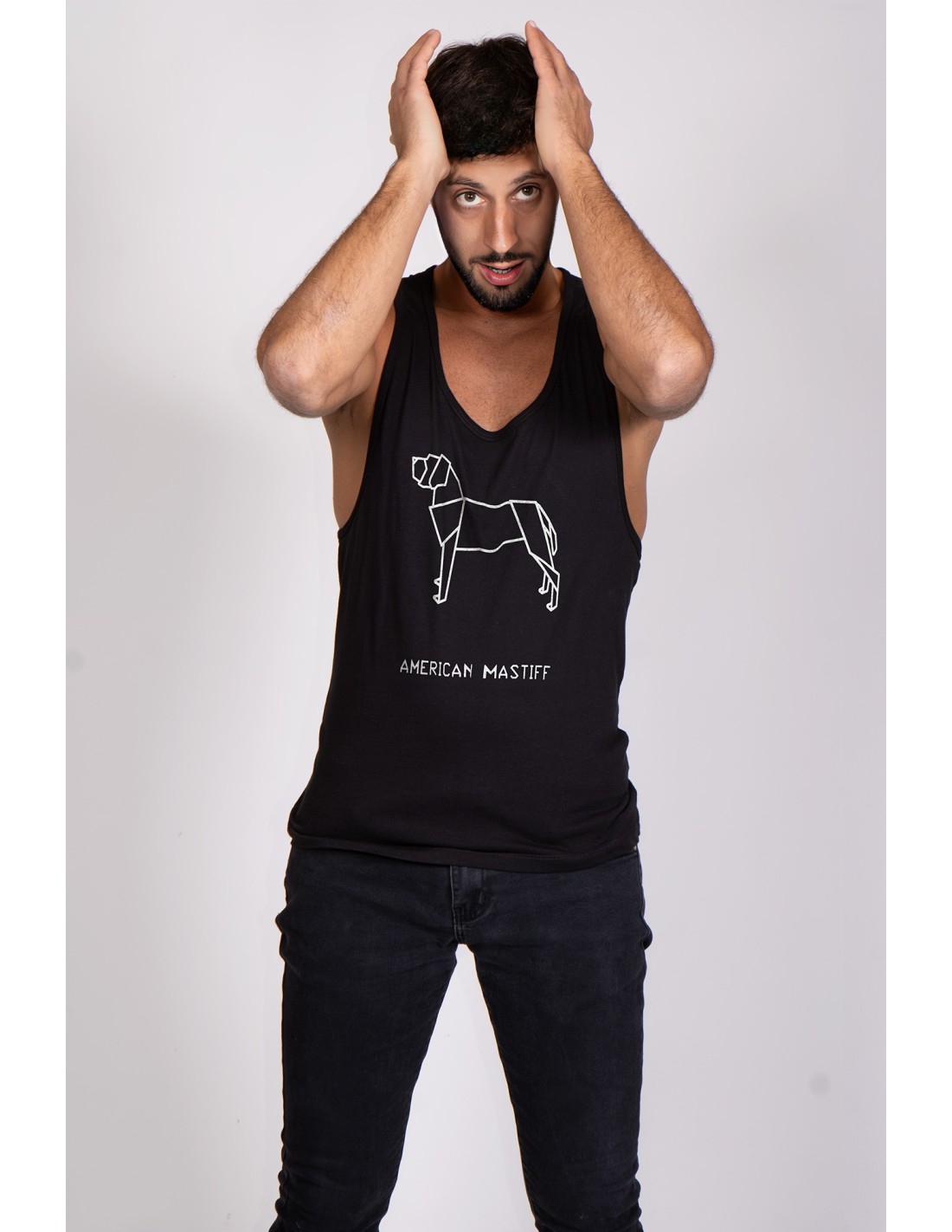 Scopri la Canotta uomo taglio ampio Origami American mastiff, il connubio perfetto tra stile palestra , comfort, e l'essenza maestosa del mastino americano.