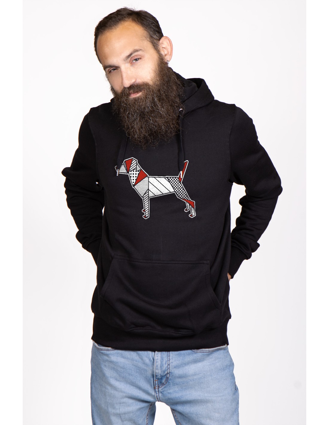 Felpa Con Cappuccio Uomo Pop Origami Jack Russell