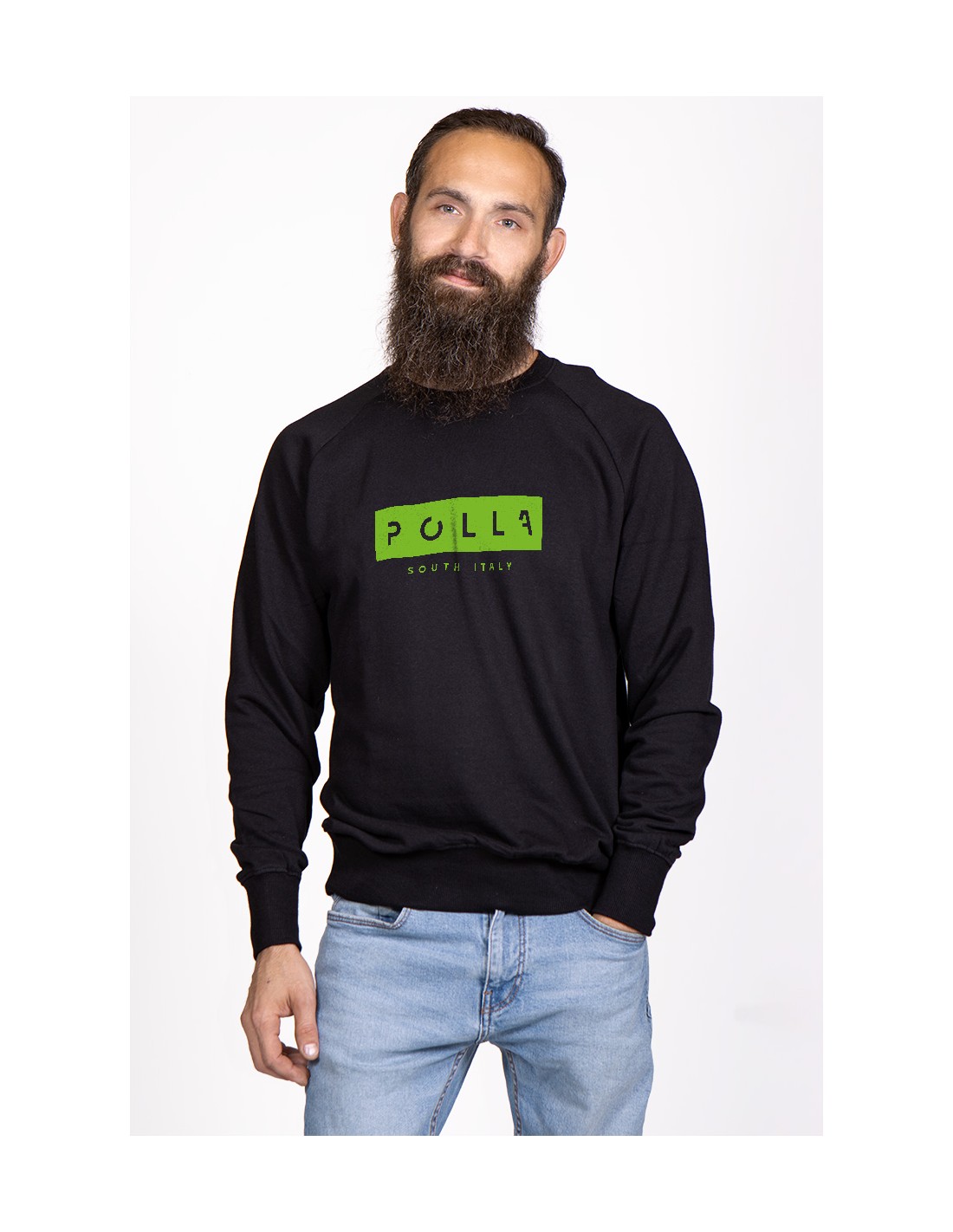Felpa Girocollo Uomo Polla Stampa Verde